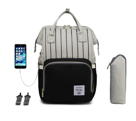 СУМКА-РЮКЗАК ДЛЯ МАМЫ LEQUEEN С USB (серый-черный, полоска)