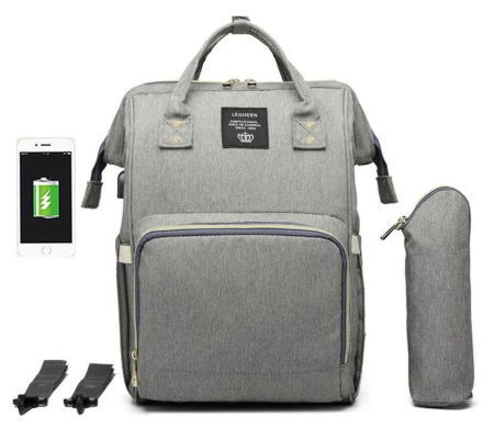СУМКА-РЮКЗАК ДЛЯ МАМЫ LEQUEEN С USB (серый)